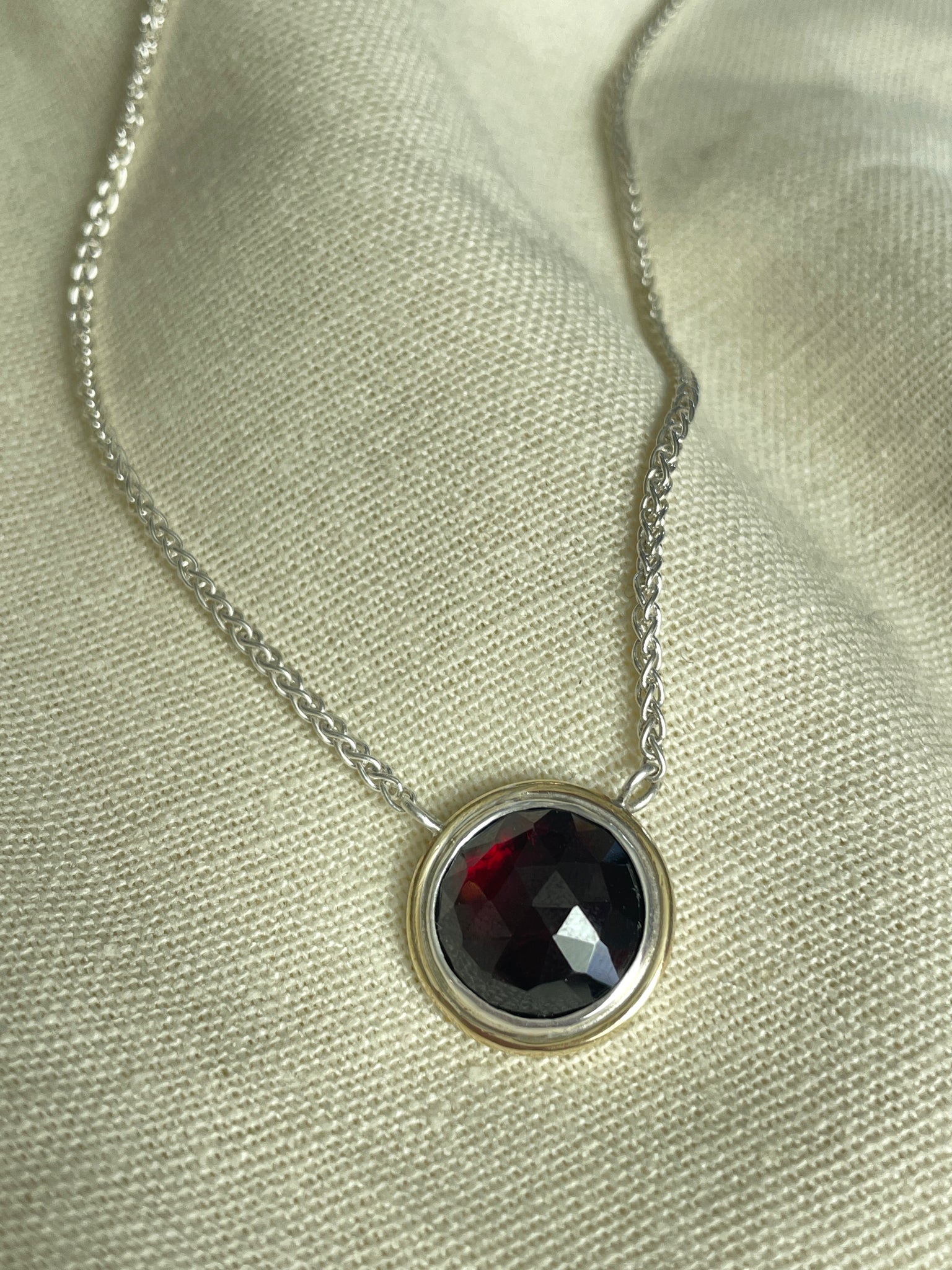 This necklace is designed to represent commitment. Garnet itself is sometimes referred to as the "stone of commitment." Whether you are committing to yourself, a goal, or a loved one, this necklace is here for it.